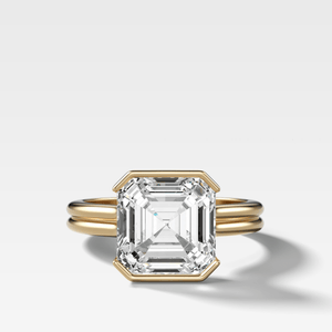 Anillo de compromiso con solitario de medio bisel de doble fila norte sur y diamante de talla Asscher