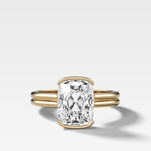Anillo de compromiso con solitario de medio bisel de doble fila norte sur y diamante de talla cojín