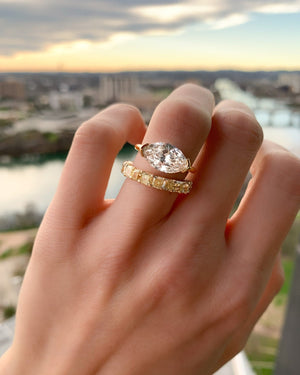 Anillo de compromiso con solitario de medio bisel East West y diamante de talla marquesa