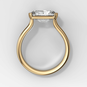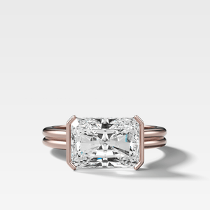 Anillo de compromiso con solitario de medio bisel este-oeste de doble hilera con diamante alargado de talla radiante