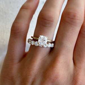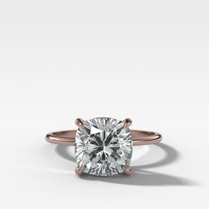 Anillo de compromiso con solitario fino y sencillo con diamante de talla cojín