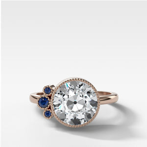 Anillo de compromiso en racimo de zafiro azul con talla euro antigua