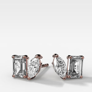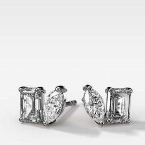 Aretes de diamantes Toi et Moi con tallas esmeralda y marquesa