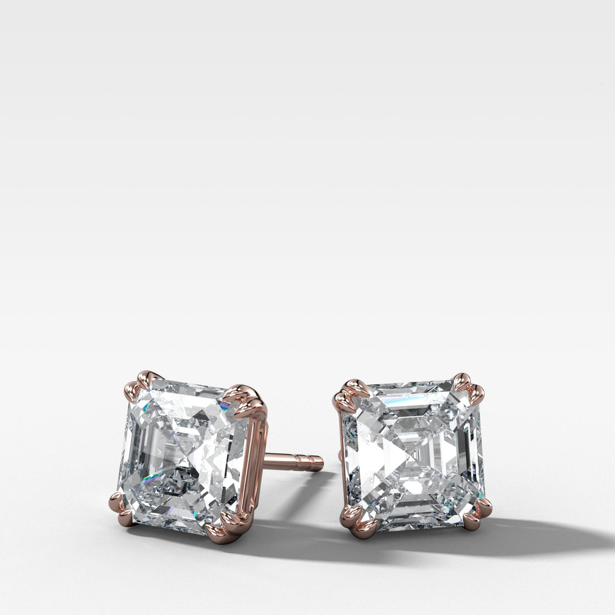 Asscher Cut Double Point Prong Diamond Studs