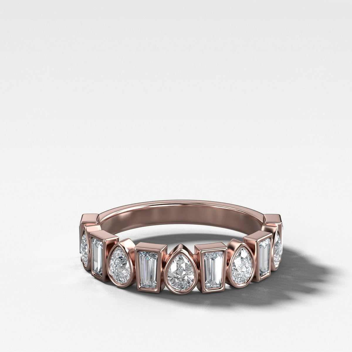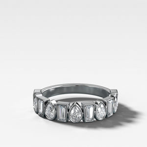 Baby Bezel Set Halfway Wedding Band with Pear and Tapered Baguette Diamonds
