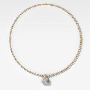 Bezel Set East West Elongated Radiant Attachable Diamond Pendant with Pavé Knife Edge Bail and Beaded Chain (3mm)