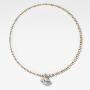 Bezel Set East West Marquise Attachable Diamond Pendant with Pavé Knife Edge Bail and Beaded Chain (3mm)
