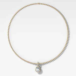 Bezel Set Pear Attachable Diamond Pendant with Pavé Knife Edge Bail and Beaded Chain (3mm)