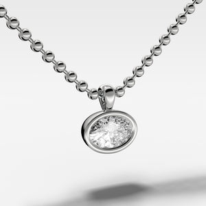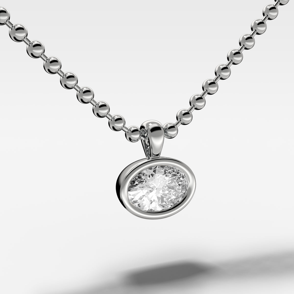 Bezel Set Pendant Beaded Necklace with East West Oval Cut Diamond