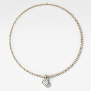 Bezel Set Round Attachable Diamond Pendant with Pavé Knife Edge Bail and Beaded Chain (3mm)