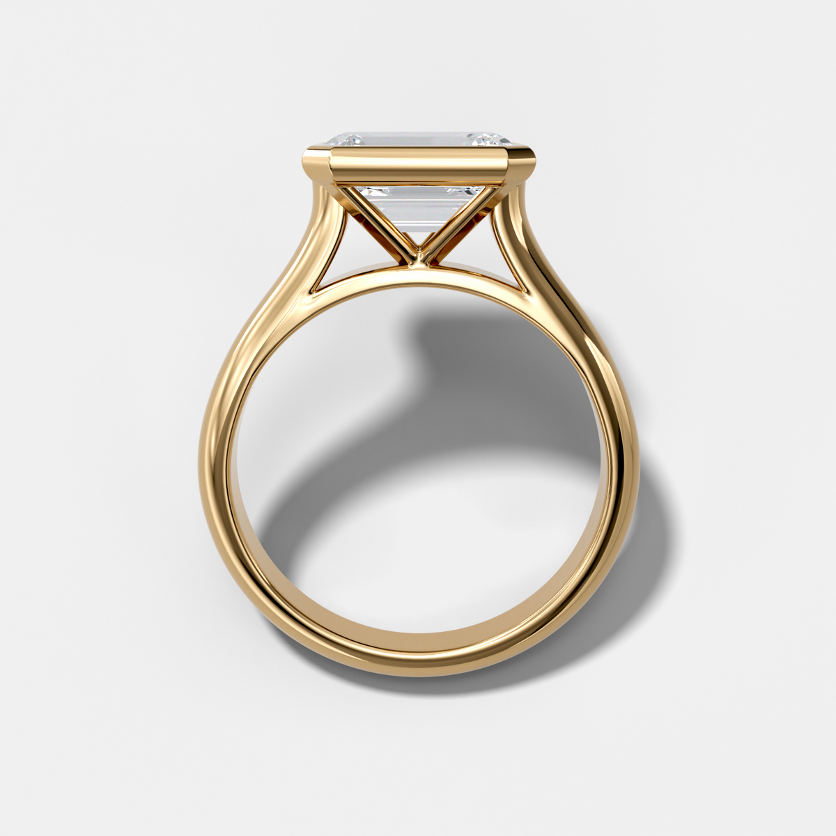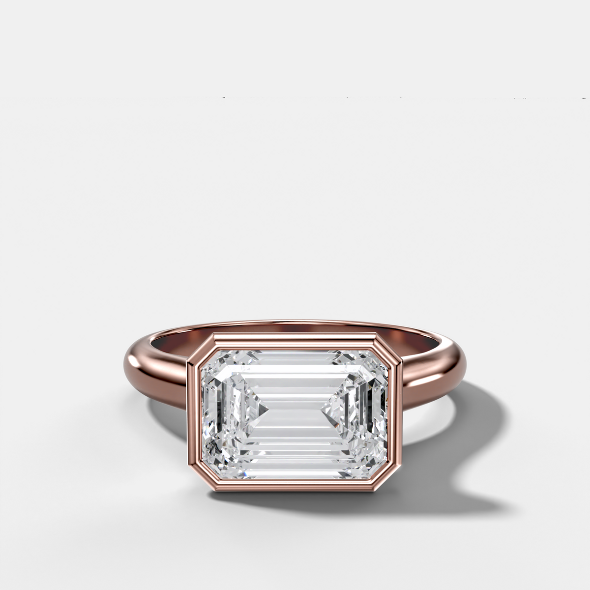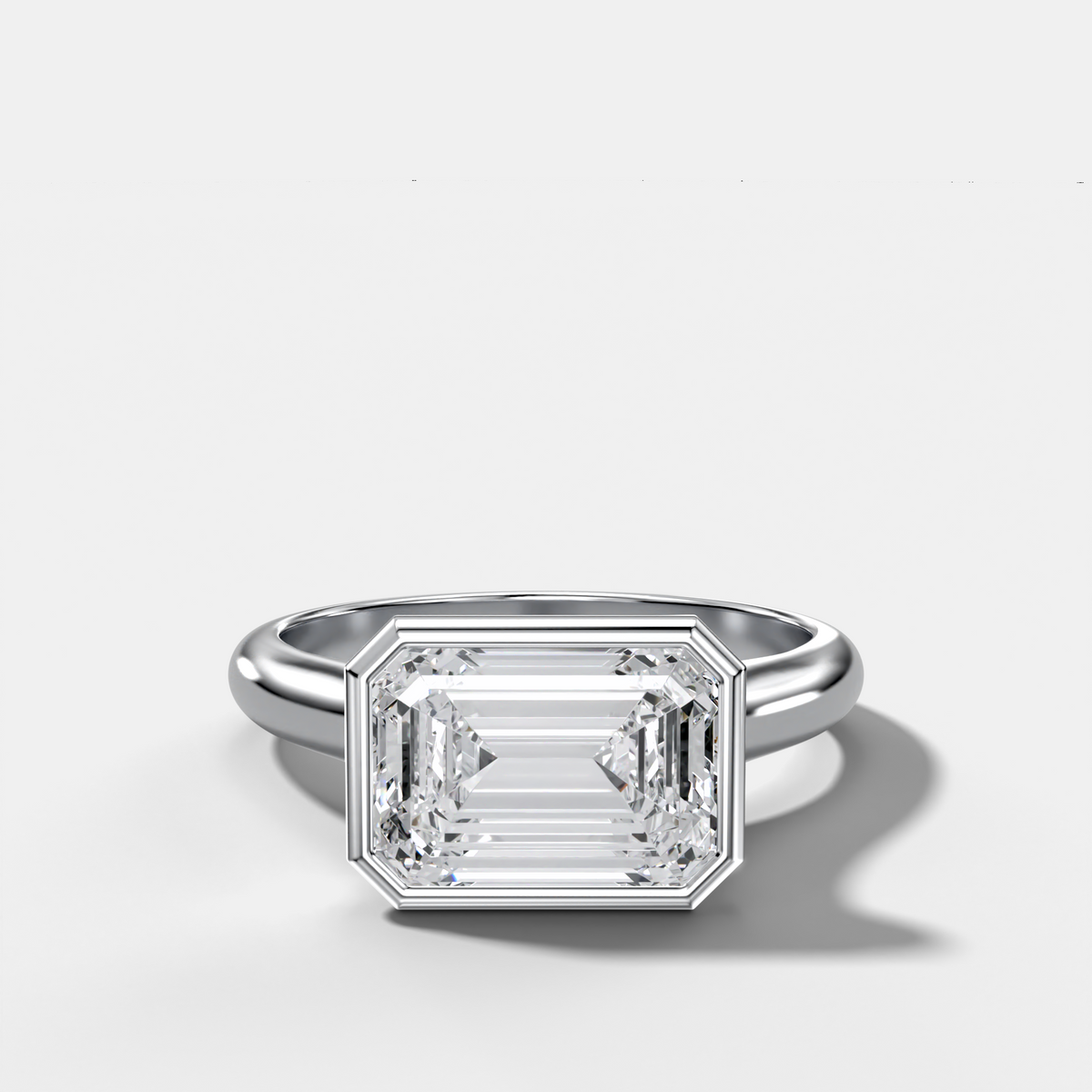 Cathedral Bezel Set Solitaire Engagement Ring With Emerald Cut Diamond (East West)