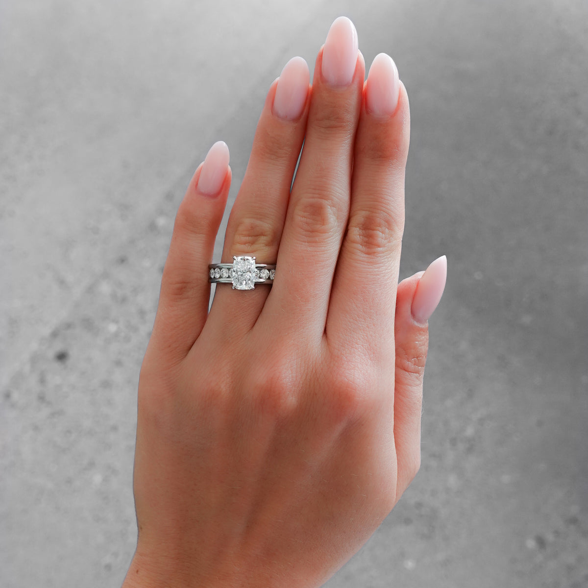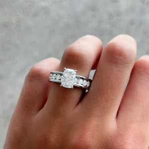 Chunky Channel Set Engagement Ring with Elongated Cushion Cut Diamond