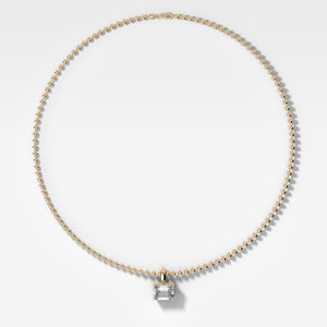 Classic East West Emerald Attachable Diamond Pendant With Beaded Chain (3mm)