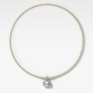 Colgante de diamantes acoplable con esmeralda East West en engarce de bisel, fianza con filo de cuchillo pavé y cadena de cuentas (3 mm)