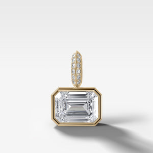 Colgante de diamantes con esmeralda en engaste de bisel East West y fianza con filo de cuchillo pavé
