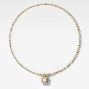 Colgante de diamantes de princesa con doble bisel y cadena de cuentas (3 mm)