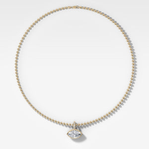Colgante de diamantes de talla marquesa East West con engarce de bisel, fianza con filo pavé y cadena de cuentas (3 mm)