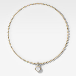 Colgante de diamantes redondo con engarce de bisel, fianza con filo de cuchillo pavé y cadena de cuentas (3 mm)