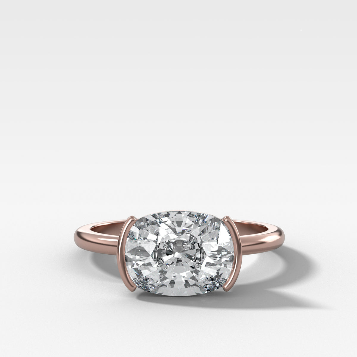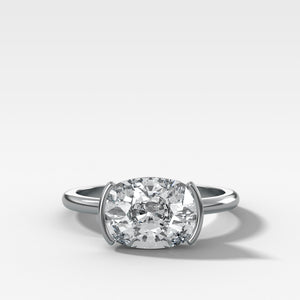 East West Half Bezel Solitaire Engagement Ring With Elongated Cushion Cut Diamond