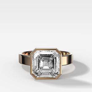 El mejor anillo de compromiso con engaste de bisel y diamante de talla Asscher