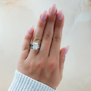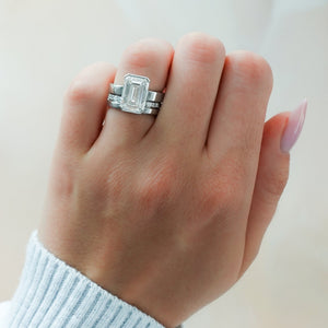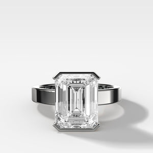 El mejor anillo de compromiso con solitario de medio bisel y diamante de talla esmeralda