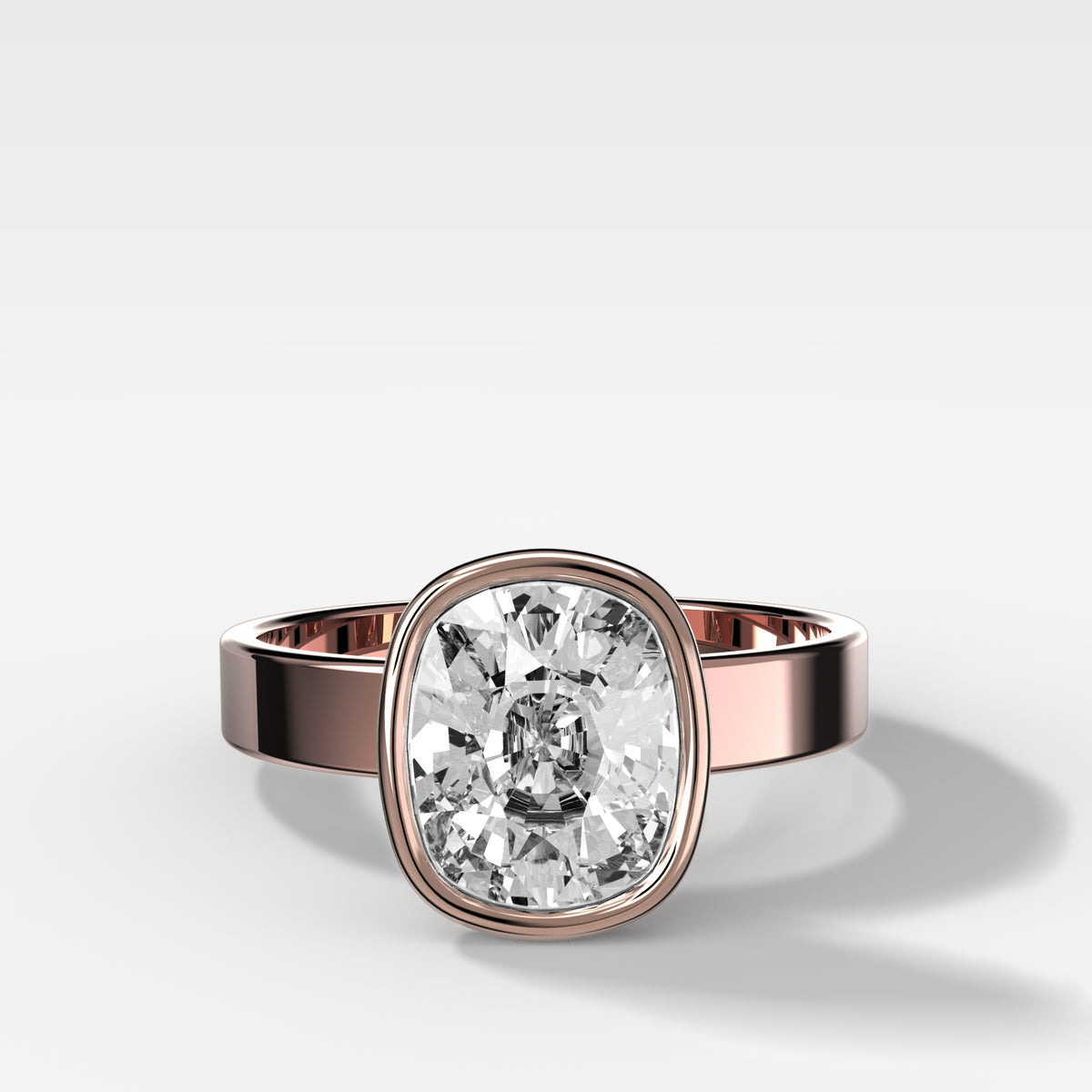 Finest Bezel Set Engagement Ring With Elongated Cushion Cut Diamond