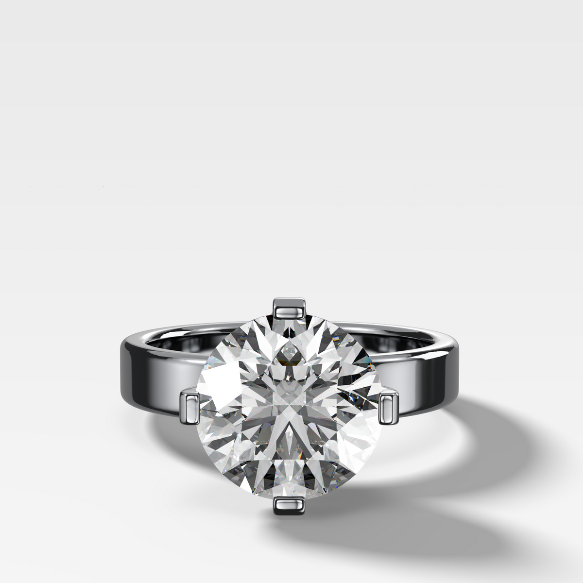 Finest Compass Solitaire Engagement Ring with Round Cut Diamond