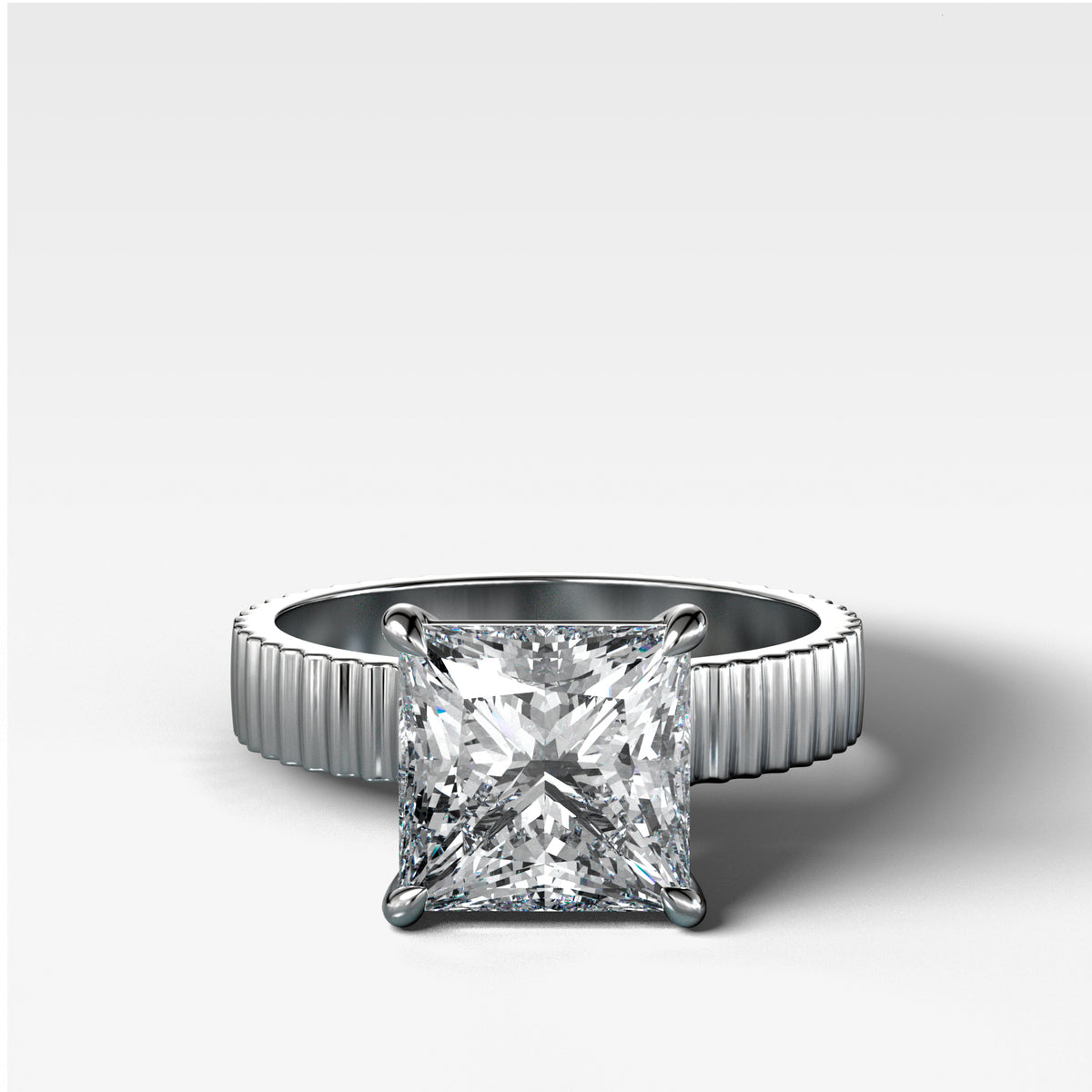 Finest Ridged Solitaire Engagement Ring With Princess Cut Diamond
