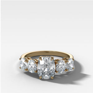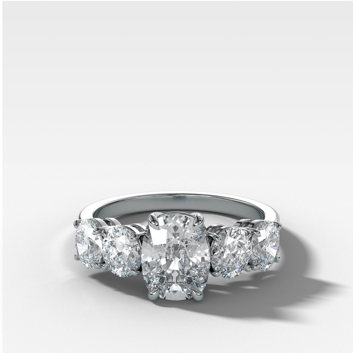 Five Stone Oval Engagement Ring With Elongated Cushion Cut Diamond