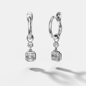 Huggies colgantes con bisel mini escalonado invertido y diamantes de talla Asscher