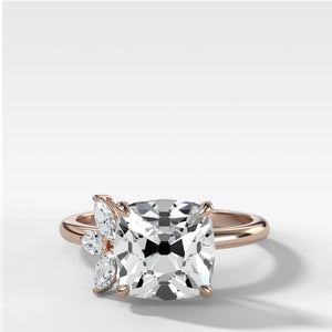 Send ring sizerNuestro anillo Lotus es un anillo de compromiso asimétrico con dos tallas marquesa y una sola ronda en un lado del centro. Si bien se presenta con un antiguo corte de mina, esta pieza se adapta a cualquier forma de piedra central.