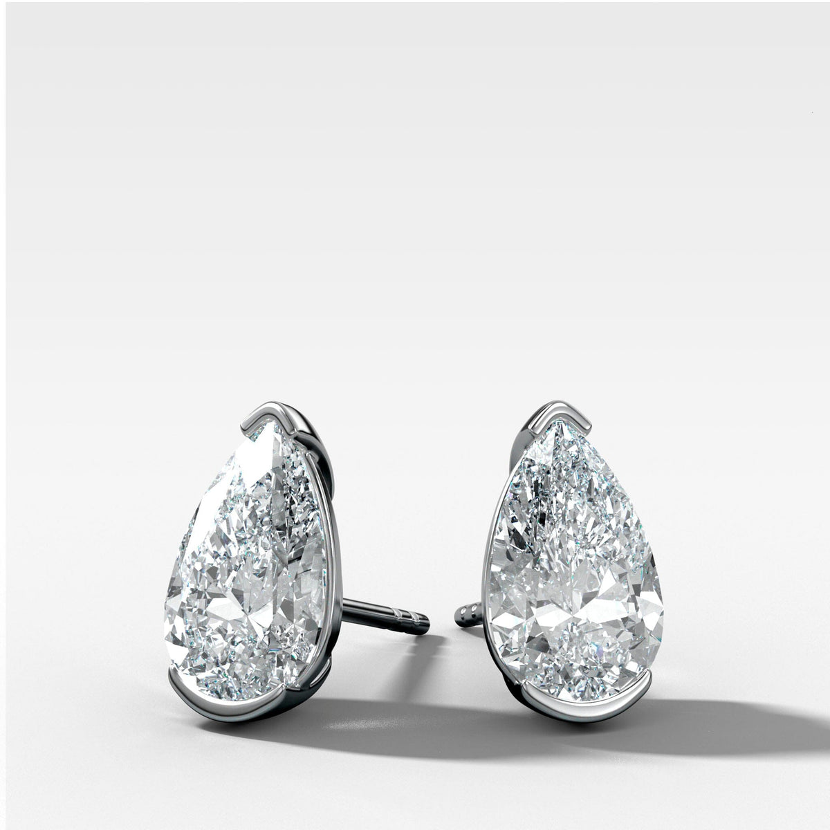 Any occasion, Pear Cut studs set in half bezels designed to secure the stones with wow-factor intact.