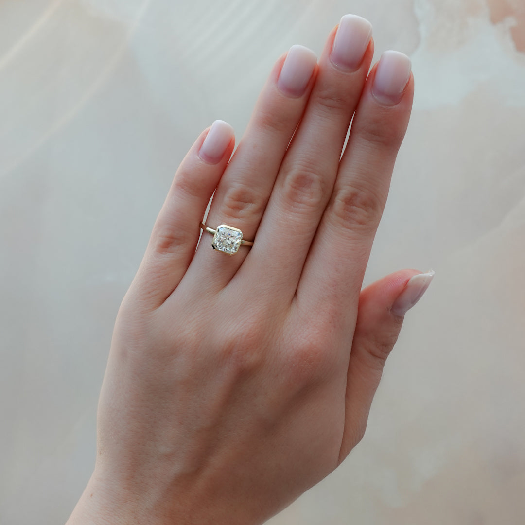 READY TO SHIP: Penumbra Bezel Set Engagement Ring With 2.01ct Radiant IGI certified Square Cut