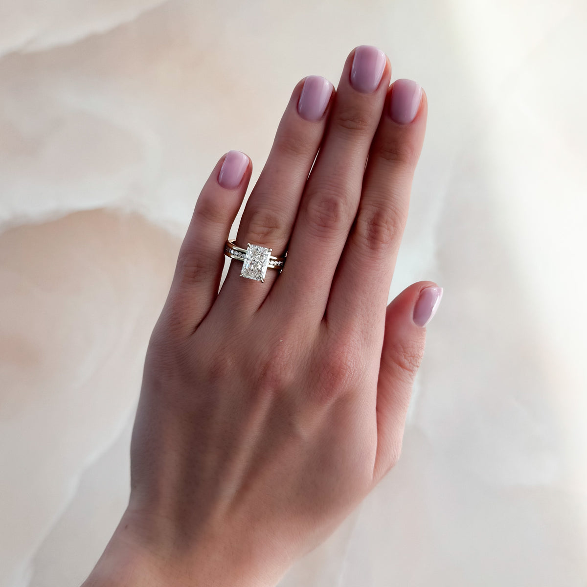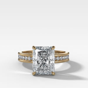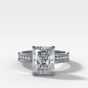 Petite Channel Set Engagement Ring with Elongated Radiant Cut Diamond