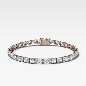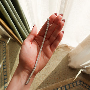 A sleek line of radiant diamonds, each set to maximize light and elegance—an elevated take on the timeless tennis bracelet.