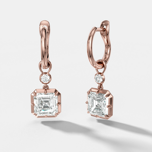 Reversed Tiered Button Back Drop Huggies with Asscher Cut Diamonds