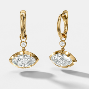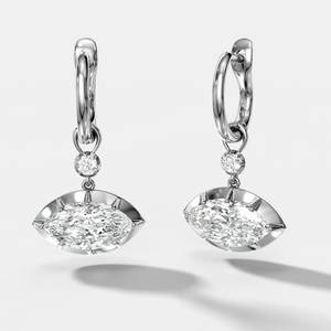 Reversed Tiered Button Back Drop Huggies with Marquise Cut Diamonds