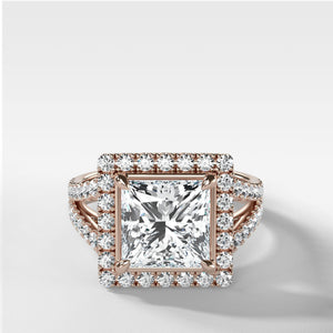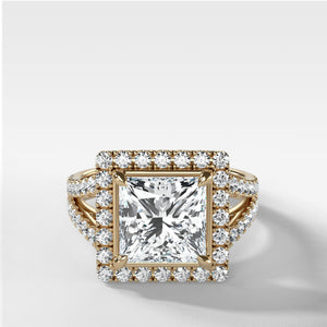 Anillo de compromiso con halo de cuerpo dividido y talla princesa