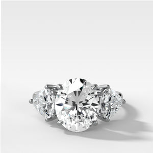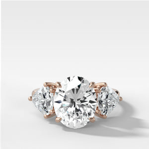 Anillo de compromiso de talla ovalada de tres piedras con lados de diamantes tipo charretera