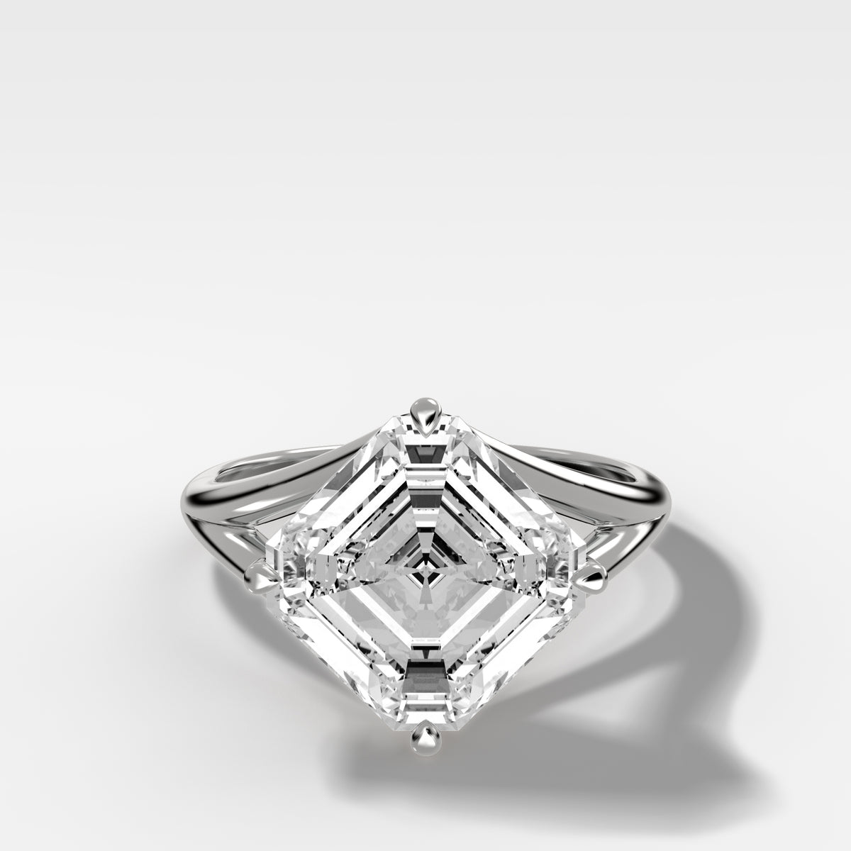 Split Shank Solitaire Engagement Ring with Tilted Asscher Cut Diamond
