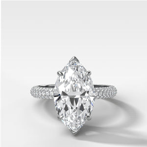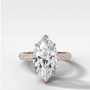 Anillo de compromiso con pavé de tres hileras y talla marquesa