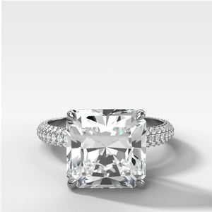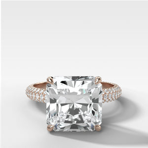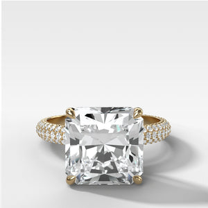 Anillo de compromiso con pavé de tres hileras y talla cuadrada radiante