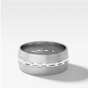 ¿Terminaste con lo delicado? Este anillo andrógino es ancho, ligeramente abovedado con un sutil acabado mate y se puede usar en cualquier dedo. Este anillo es de eternidad total con diamantes baguette alrededor del anillo.