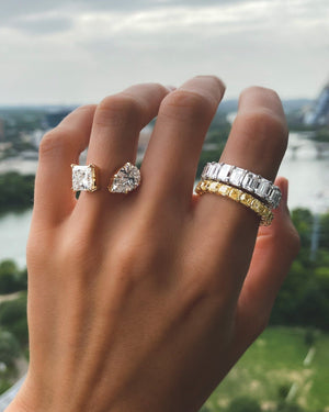Asscher cuts are so old school, they're new school again. Like an Emerald Cut but square, this cut is a subtle way to buck the tradition of a round diamond wedding band. Featured here in the full eternity.