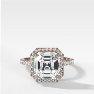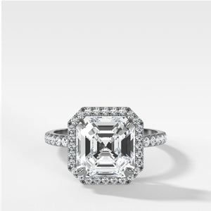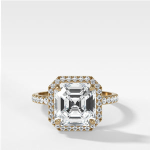 Send ring sizerA luminous halo of pavé-set diamonds encircle the center stone, a diamond in the shape of your choice, to bring extra dimensions to this cathedral ring's sparkle.