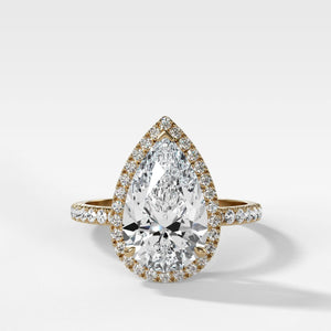 Send ring sizerA luminous halo of pavé-set diamonds encircle the center stone, a diamond in the shape of your choice, to bring extra dimensions to this cathedral ring's sparkle.