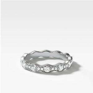 Similar to our Pavé Ripple band, this bead set version uses slightly larger diamonds and a different setting style with some old school borders to set your fingers apart from the rest. Featured in the halfway Eternity style.
