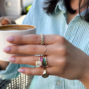 Not sure of your ring size? No worries! In our finger size choice box, you have the option to request a complimentary ring sizer. Before we begin crafting your unique ring, we'll send you this handy tool. Simply determine your accurate size and let us know. With the correct size in hand, we're ready to bring your GOODSTONE ring to life.