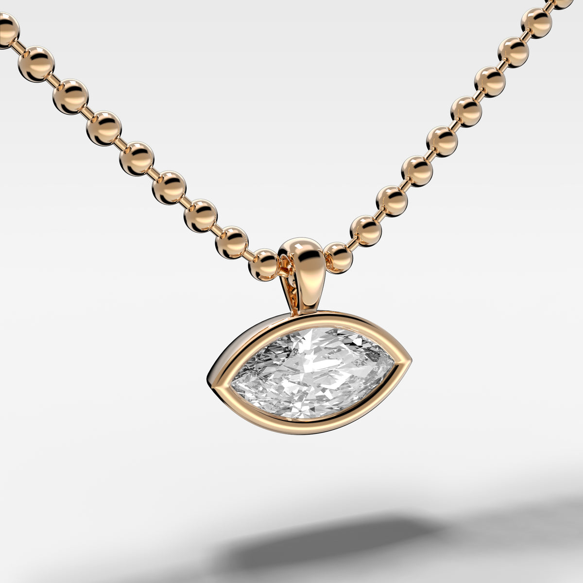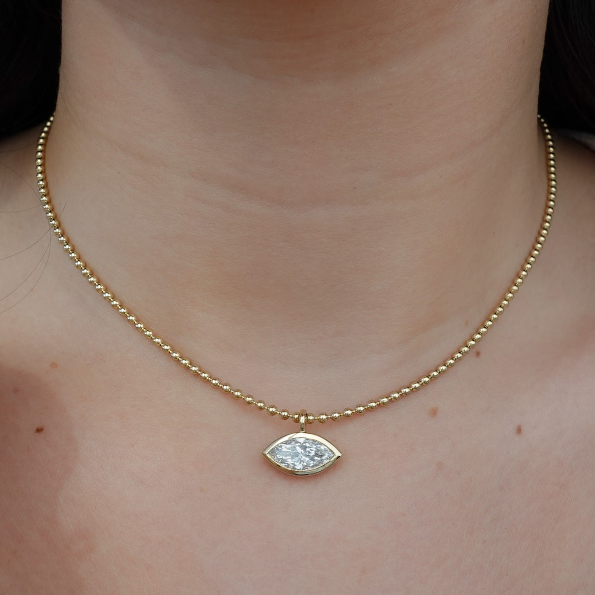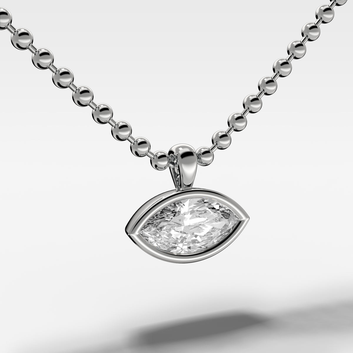 Bezel Set Pendant Beaded Necklace with East West Marquise Cut Diamond