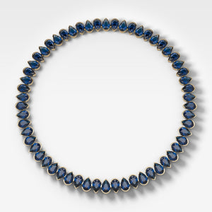 Introducing our exquisite Half Bezel Pear Blue Sapphire Diamond Choker Necklace, a testament to timeless elegance and masterful craftsmanship.